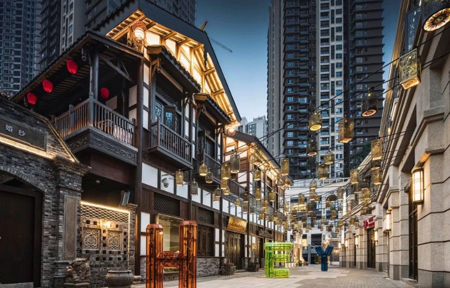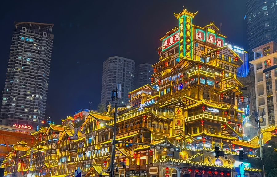 - Phố Cổ Hồng Nhai Động – Khu phố cổ 11 tầng lầu với mái ngói rêu phong, hoa văn chạm trổ, phía sau là những tòa nhà chọc trời, nằm ở khu trung tâm thương mại thành phố Trùng Khánh, bên bờ sông Dương Tử, là điểm bờ sông giao nhau của hai con sông Trường Giang và sông Gia Linh.