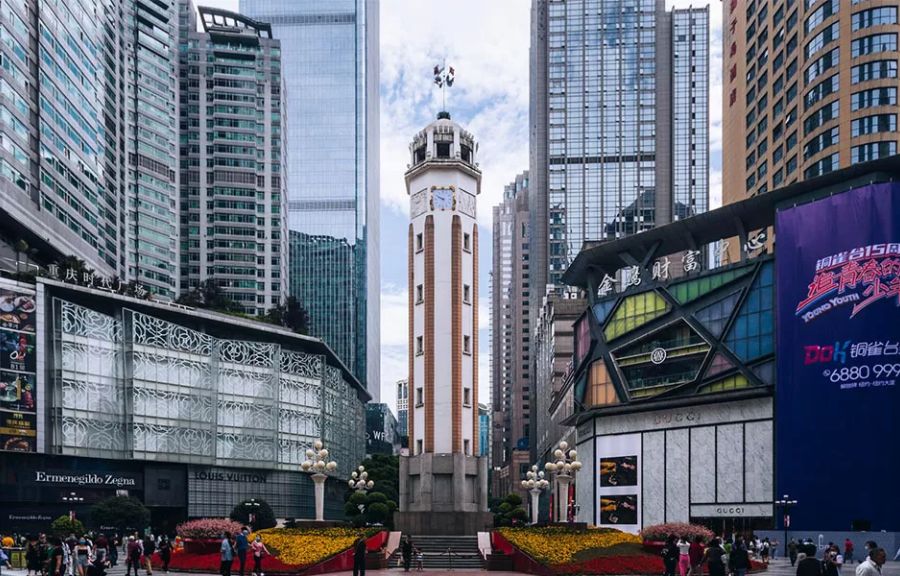 - Phố đi bộ Bia Giải Phóng nơi quy tụ nhiều toà nhà cao tầng, trung tâm thương mại vô cùng tráng lệ và lộng lẫy. Là điểm vui chơi của người dân Trùng Khánh từ rất nhiều tầng lớp, từ người trẻ đến người già đi dạo chơi quanh con phố đi bộ này.